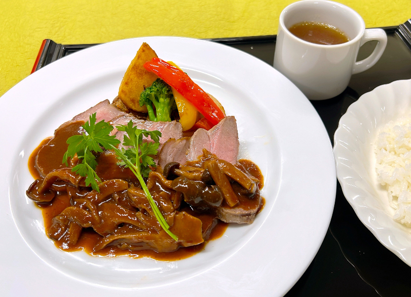 特製きのこのデミグラスソースでお楽しみください。