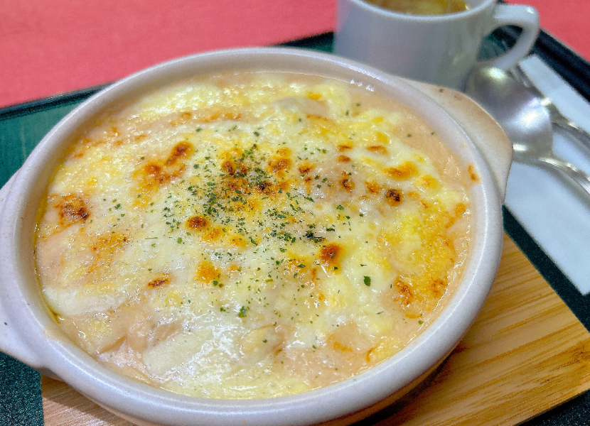 濃厚でクリーミーなベシャメルソースとチーズで香ばしく